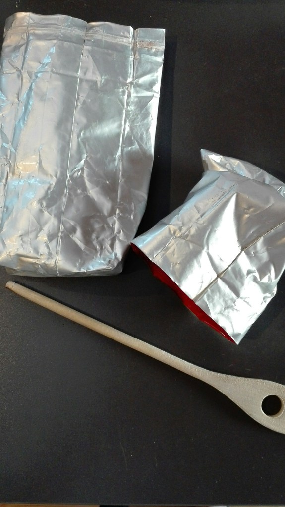 Ich verwerte die Verpackung des gekauften Kilos Kaffee wieder, denn es entsteht beim Kauf klarerweise Abfall – aber auch eine ideale, feste Verpackung zum Mitnehmen einer Jause, zum Mitbringen von Geschenken aus der Küche oder zum Transportieren von Pflanzen. Ich verwende die beschichteten Verpackungen wieder, indem ich den gesamten Beutel oben gerade abschneide – bereits beim Öffnen – und dann mit Hilfe eines Kochlöffels umdrehe. Wenn die Kaffeebrösel vollkommen entfernt sind, riecht das Ganze noch immer ein bisschen nach Kaffee, das stört mich aber nicht im geringsten.