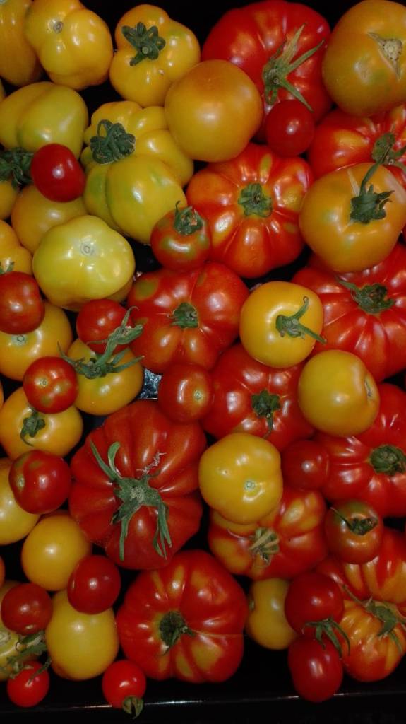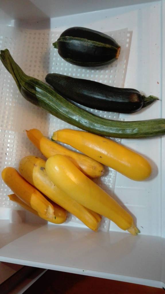 Viele Kräutern, ein bisschen Obst (Beeren, Physalis, Zwetschgen, Äpfel, Melonen und drei (!) Stachelbeeren) und anständig viel Gemüse, vor allem Mangold, Paradeiser, Chilis und Pfefferoni, Gurken, Brokkoli, Erbsen, Melanzani und Zucchini habe ich aus unserem Garten, Gewächshaus und Folientunnel bisher geerntet. Ich hoffe noch Süßkartoffeln ernten zu können, jedenfalls jene die die Wühlmäuse übrig gelassen haben. Auch Salat haben wir viel gehabt, allerdings über den heissen Sommer keinen Kopfsalat, da wir nicht rechtzeitig nachgesät haben. Momentan wächst noch Zuckerhut, Endiviensalat, Petersilie, Mangold und Brokkoli, auch Tomaten habe ich noch ein paar auf den Stauden.
