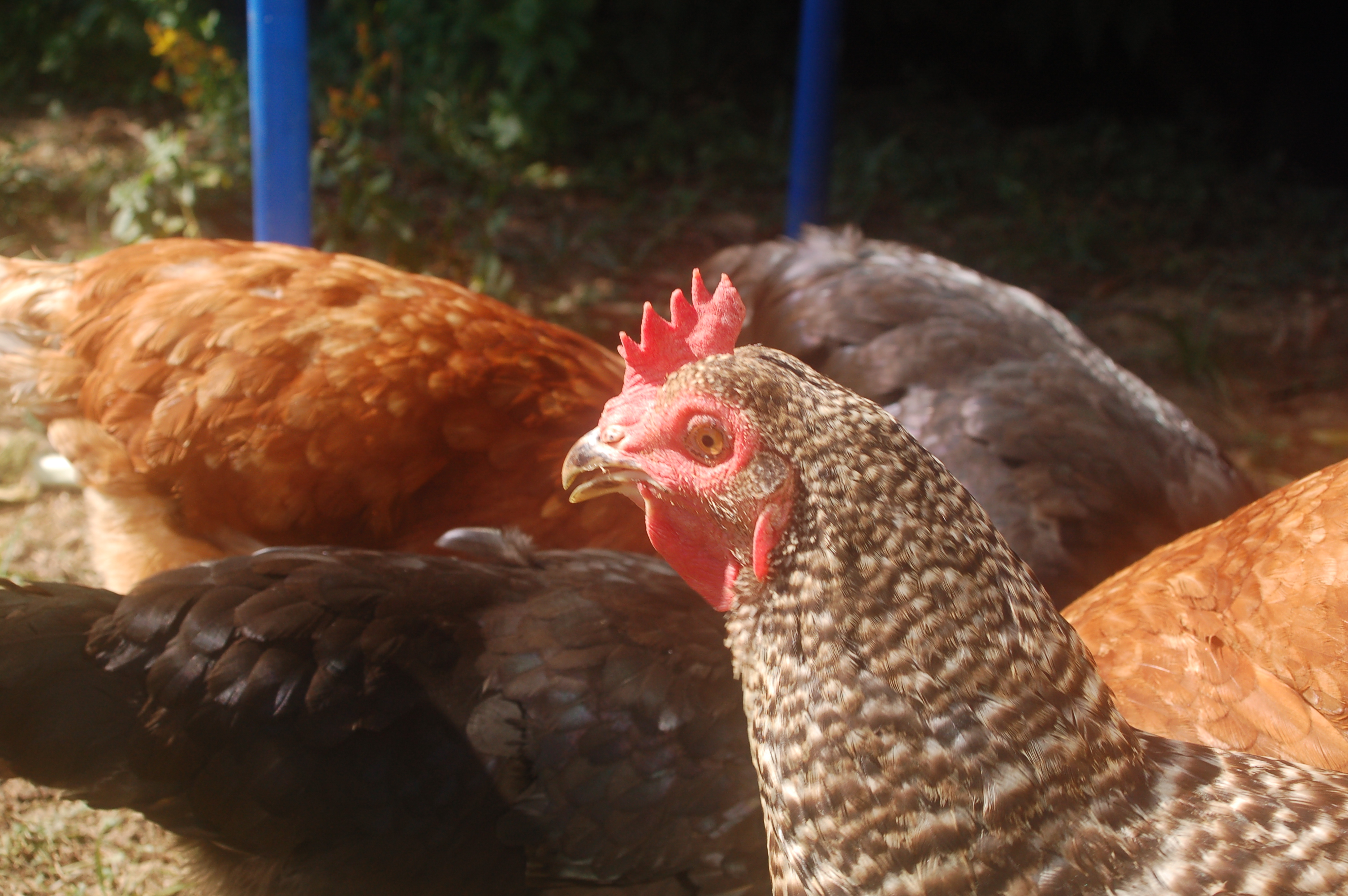 Kalkmangel – meine Hennen bekommen genügend Eierschalen zur freien Entnahme. Ich zerstoße sie vorher recht fein, habe aber jetzt mit dem Mixer nachgeholfen, damit die Hühner die Eierschalen möglichst nicht als Eierschalen erkennen.