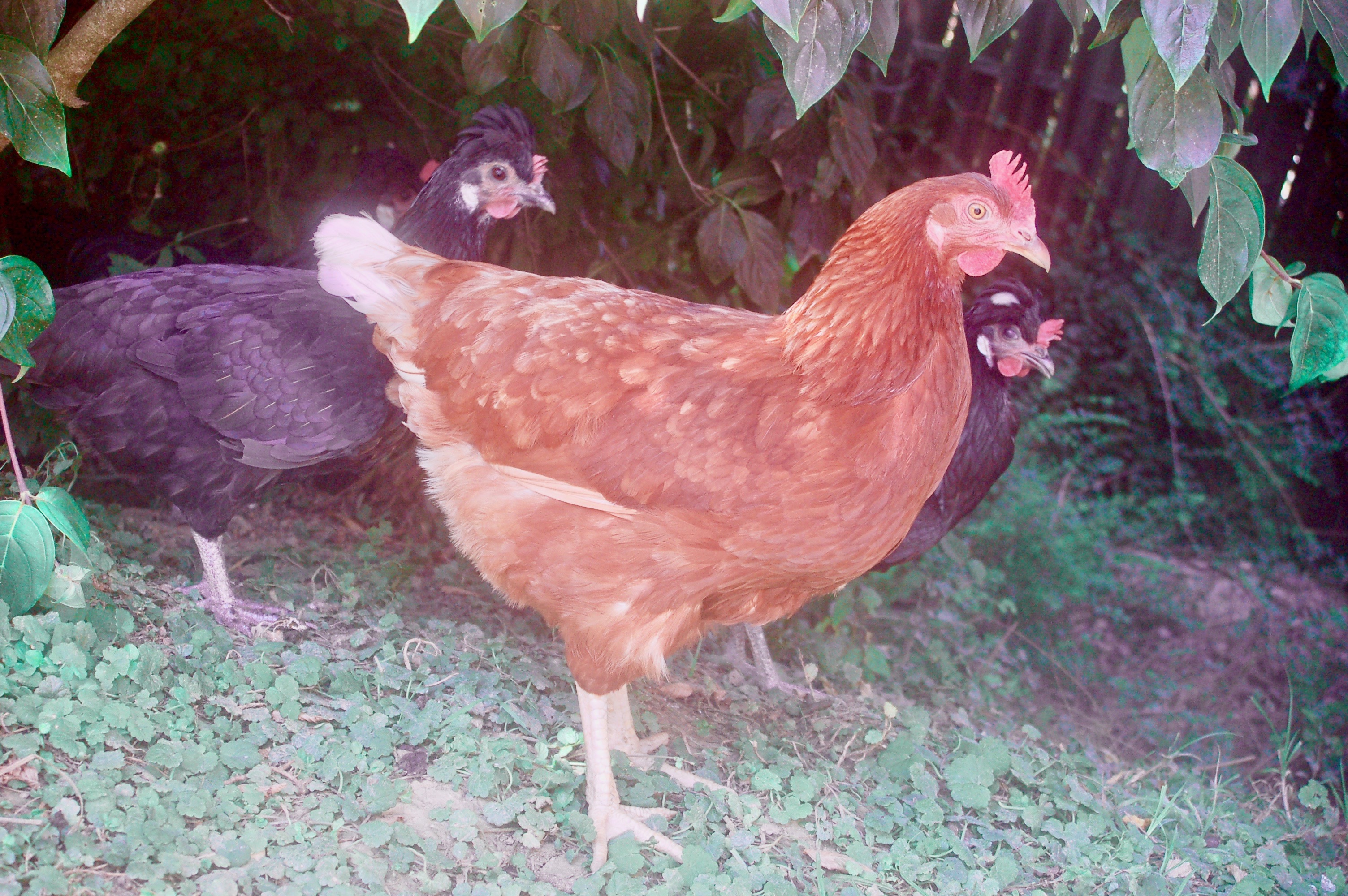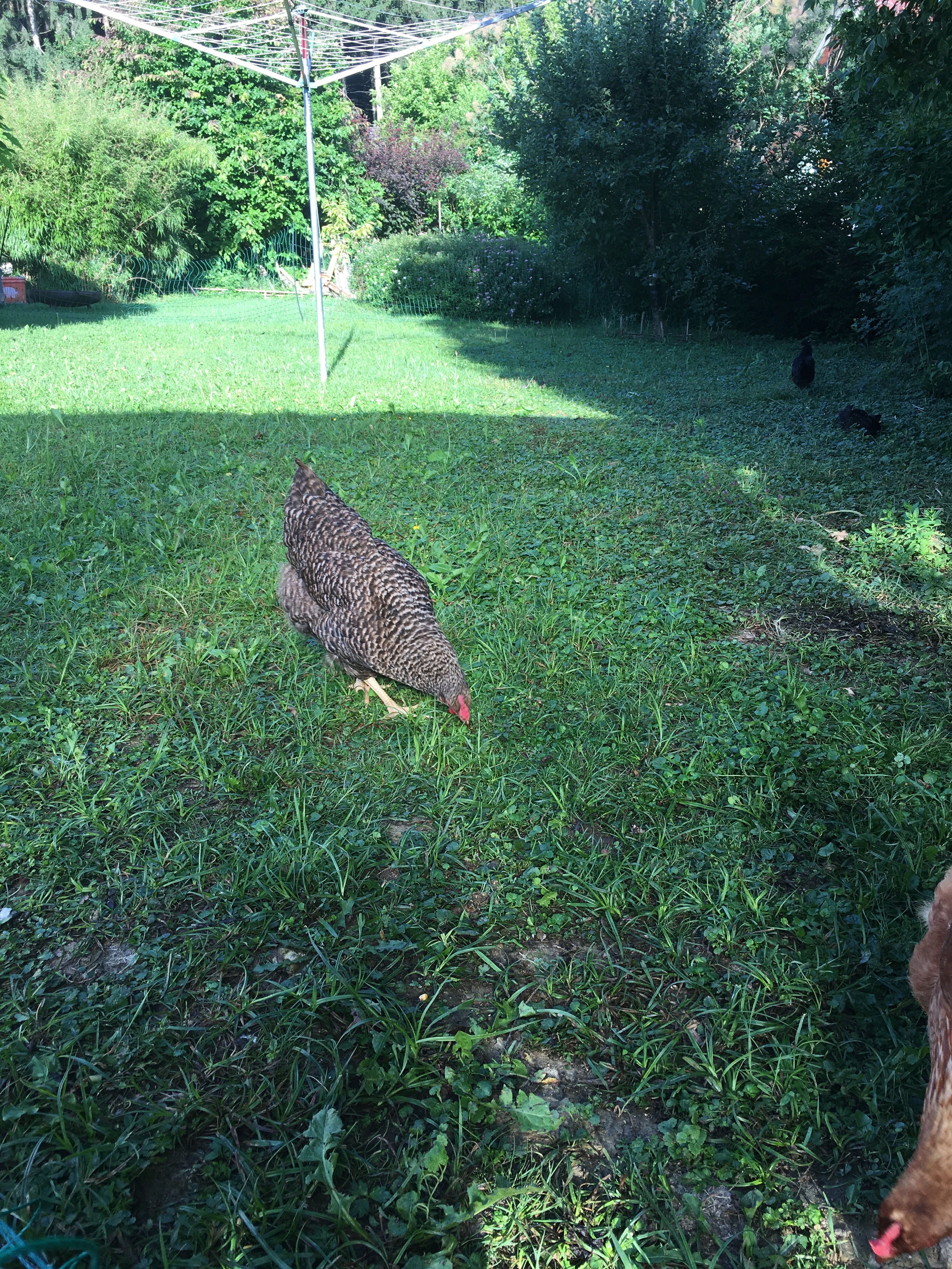 Eiweißmangel – kann ich mir bei meiner Hühnerschar nicht vorstellen, denn sie haben einen riesigen Auslauf, können sich alles was nur kreucht und fleucht suchen und bekommen noch dazu Legefutter gemischt mit Mais und Weizen. Sie bekommen fast täglich zusätzlich Nacktschnecken die sie (derzeit immer noch) gierig fressen und bekommen zusätzlich ab und zu Küchenreste (gekochter Reis, Kartoffeln, Nudeln, Brot,..). Es gibt Ratschläge nach denen man eigenen Hühner nur Legekorn geben sollte, da aber meine Hennen den ganzen Tag draußen grasen, kratzen, suchen und fressen kann ich die Ernährung der Tiere sowieso nicht 100% steuern.