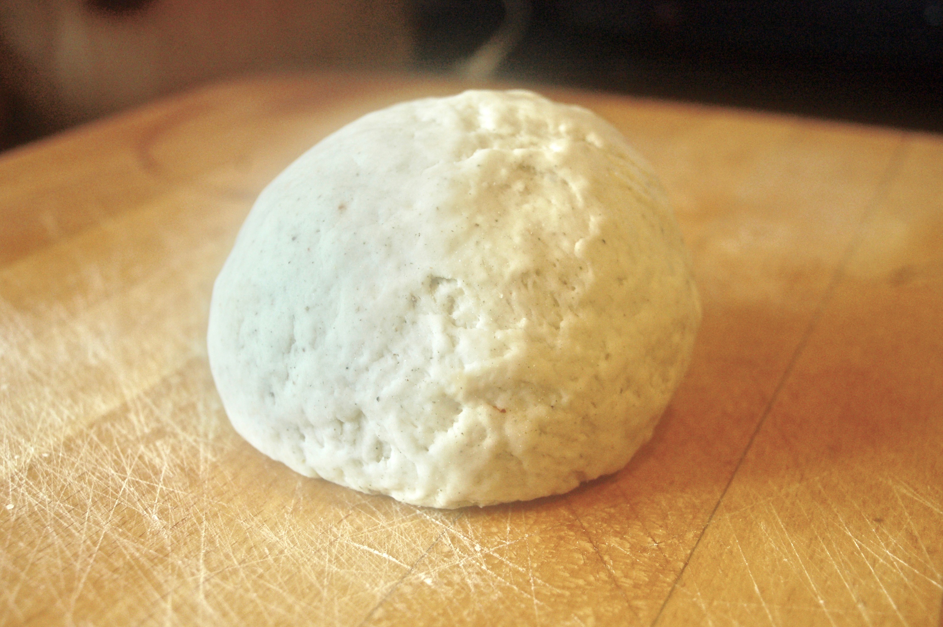 Falls der Teig zu weich sein sollte, noch ein bisschen Mehl einarbeiten. Den Teig anschließend für 1/4 Stunde ruhen lassen. Deck eine passende Schüssel über den Teig, damit er nicht austrocknet.