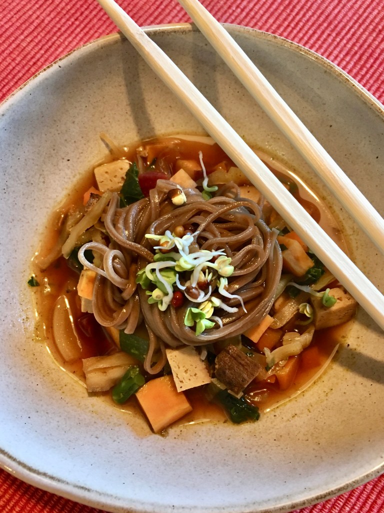 Ramen, histaminarm und vegan lässt sich nur zubereiten wenn man auf den typischen Ramen-Geschmack verzichtet der von Sojasauce, Miso, oder auch Fleisch stammt. Hier also eine vegane Variante die von den original Ramen-Rezepten inspiriert wurde. Das Gute am Rezept für Ramen ist die Vielfalt und Flexibilität der Zutaten. Sind keine Schwammerl vorhanden, lassen wir sie weg, haben wir keine Ramennudeln nehmen wir Spaghetti und das ist dann auch ok. Das Wichtigste ist eine gut gewürzte Suppe, Gemüse und die Nudeln in der Suppe.