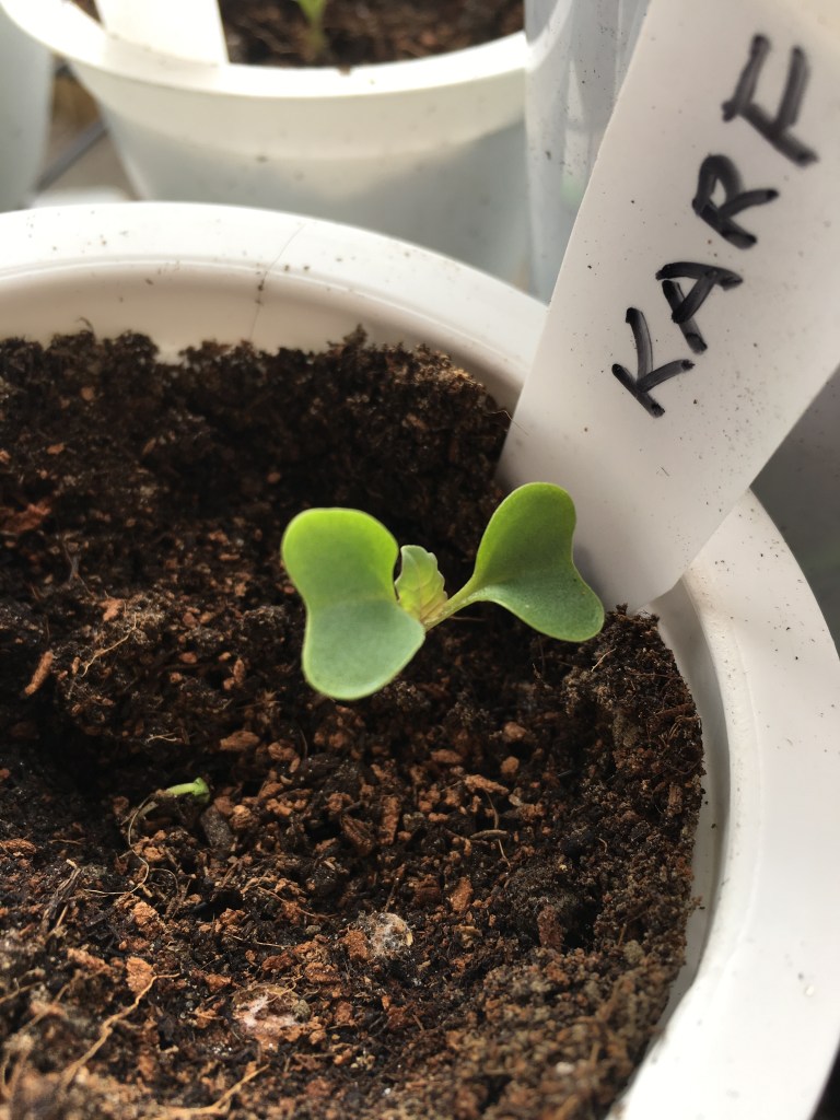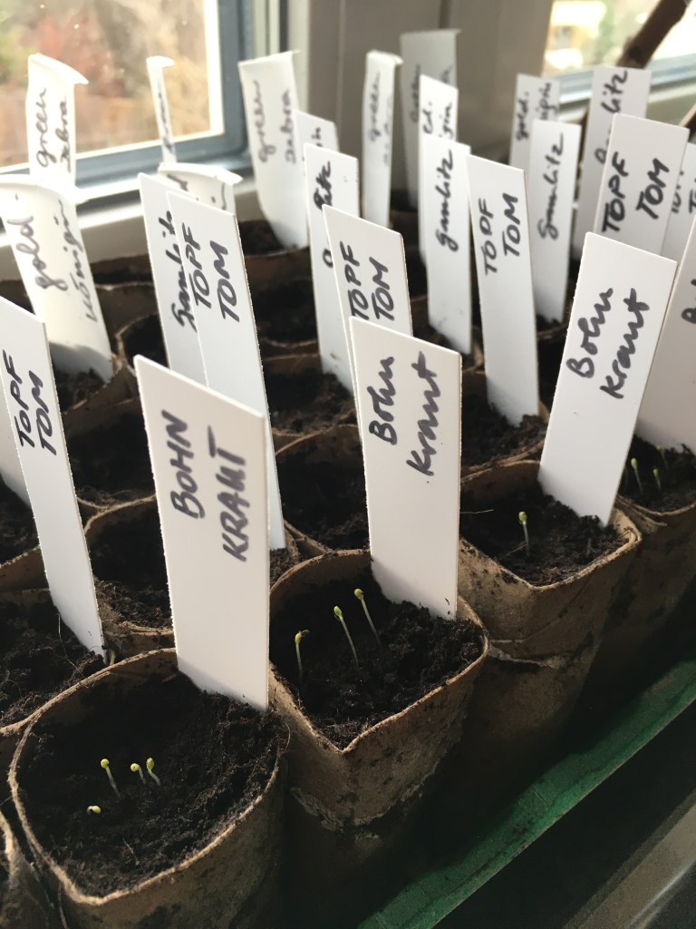 Bei den Temperaturschwankungen ist es täglich ein Rein-und Raustragen der Pflanzwagerl. Doch hat sich dieses System das ich dieses Jahr das erste Mal ausprobiere, sehr gut bewährt. An sehr kalten Tagen, stelle ich die Wagerl auf das Fensterbrett bzw. zur Terassentüre. Bei den derzeitigen Lichtverhältnissen ist es besonders wichtig, den kleinen Pflanzen viel natürliches Tageslicht bei nicht zu hohen Temperaturen zu geben. Bei zu wenig Licht „vergeilen“ die Pflanzen, sie wachsen zu schnell in die Höhe, werden damit zu dünn und schwach.