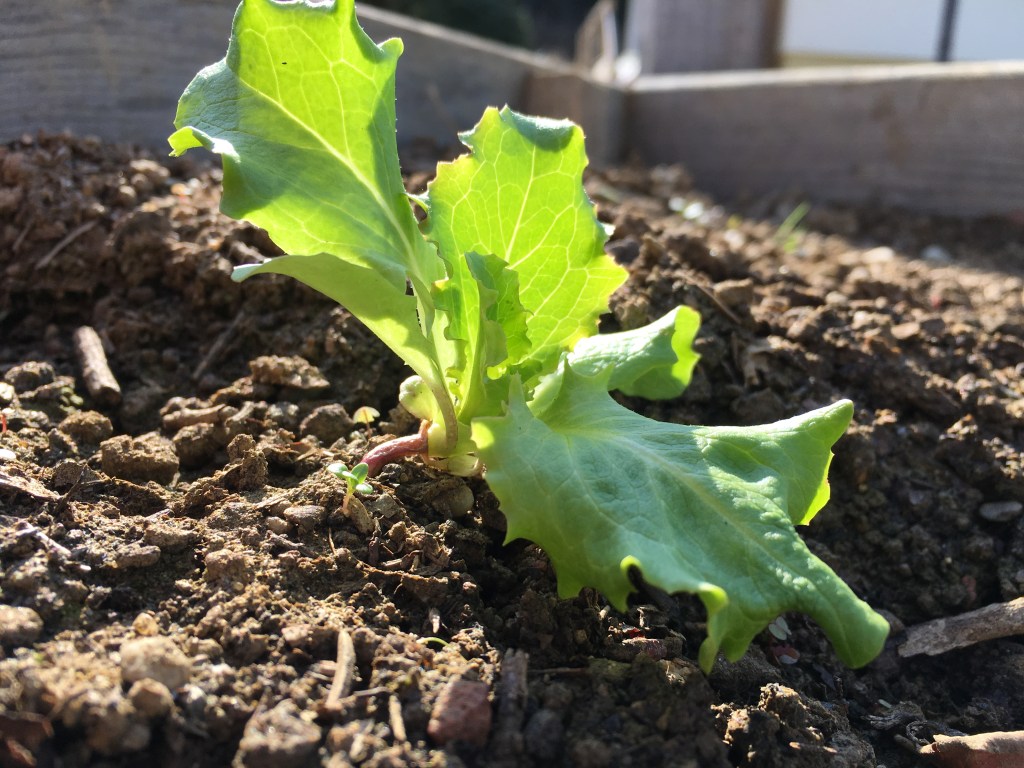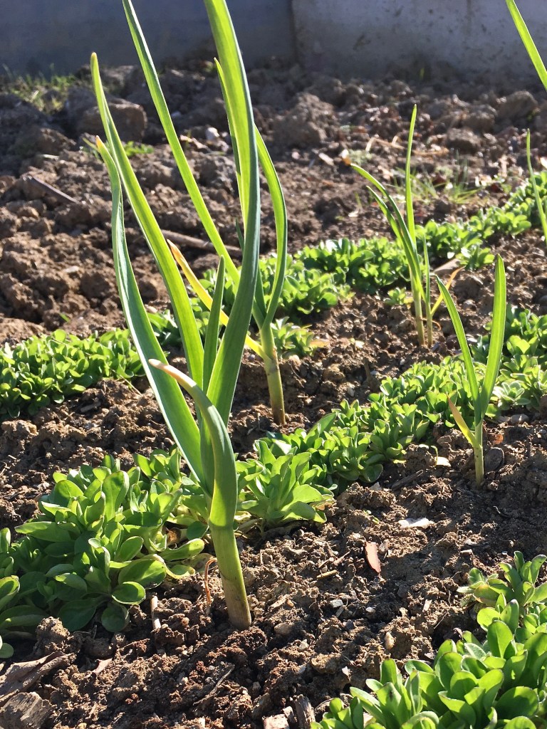 Im Herbst habe ich ein kleines Beet mit Vogerlsalat und Knoblauch angelegt. Den Salat habe ich, wie ihr vielleicht auf dem Foto unten sehen könnt, viel zu dicht gesät. Jetzt ist das Ernten ein bisschen mühsam und auch das Wachstum der einzelnen Pflanzen ist nicht optimal. Das nächste Mal werde ich mich noch mehr bemühen die Saatkörner dünn auszusäen. Zwischen die Salatreihen habe ich Knoblauchzehen gesteckt, ich bin neugierig wann ich den ersten eigenen Knoblauch ernten werde.