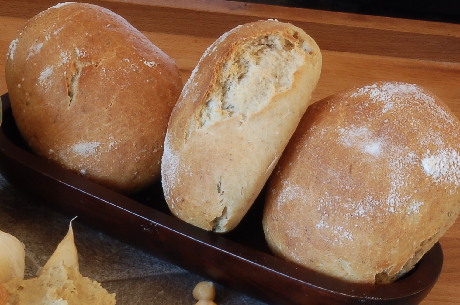- Auf einer bemehlten Fläche den Teig in 6 Stücke teilen und zu länglichen Teiglingen formen. Diese auf ein Backblech mit Backpapier setzen und nochmals kurz rasten lassen.