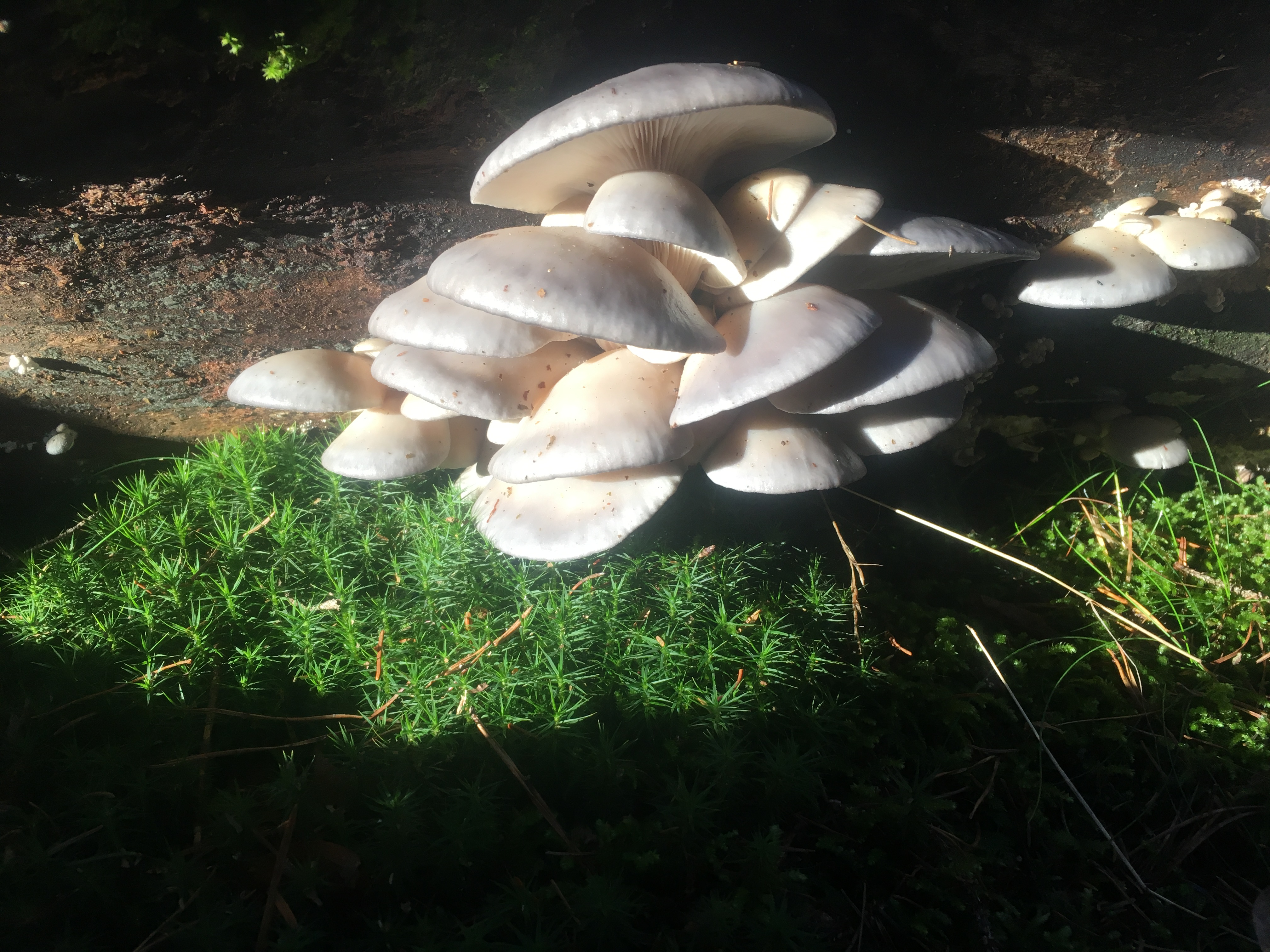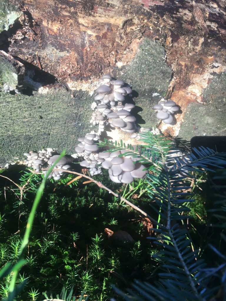 Nochmals wunderschöne Austernpilze, die bei uns auf einem umgefallenen Baum wachsen.