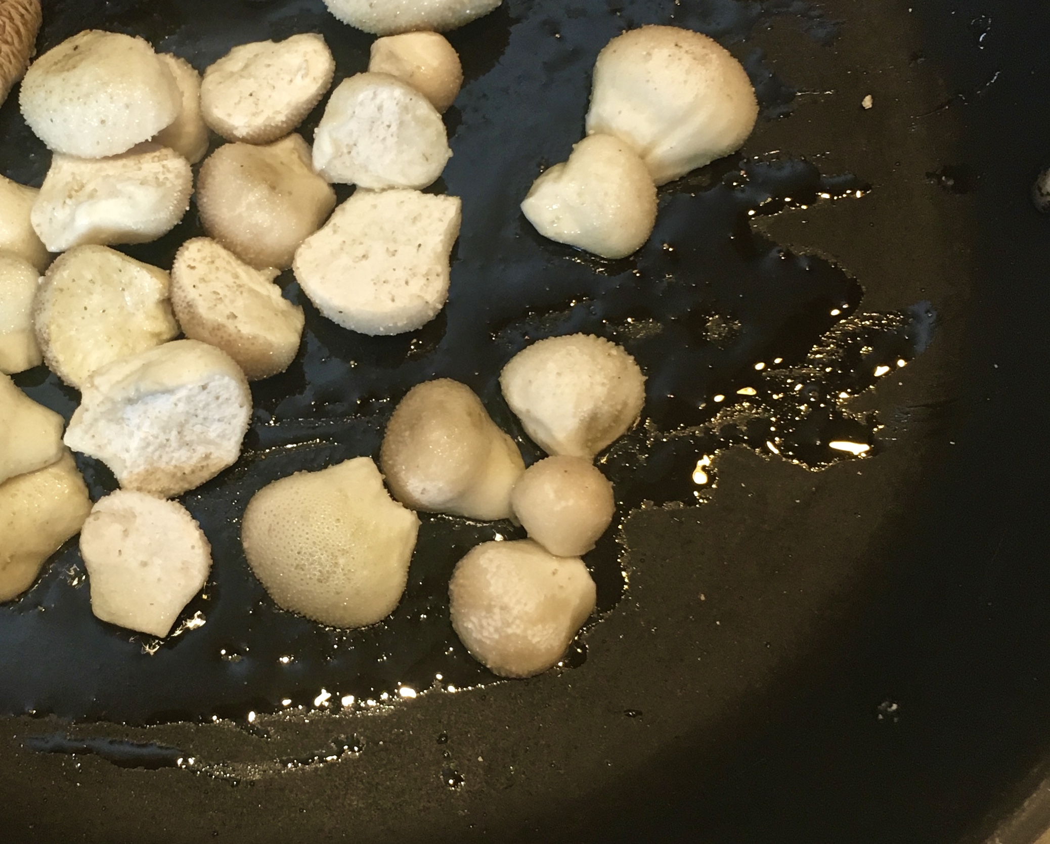Junge Flaschenstäublinge brate ich in wenig Öl goldbraun an und genieße sie mit etwas Knoblauch mit einem guten, frischen Brot oder über einem Salat.