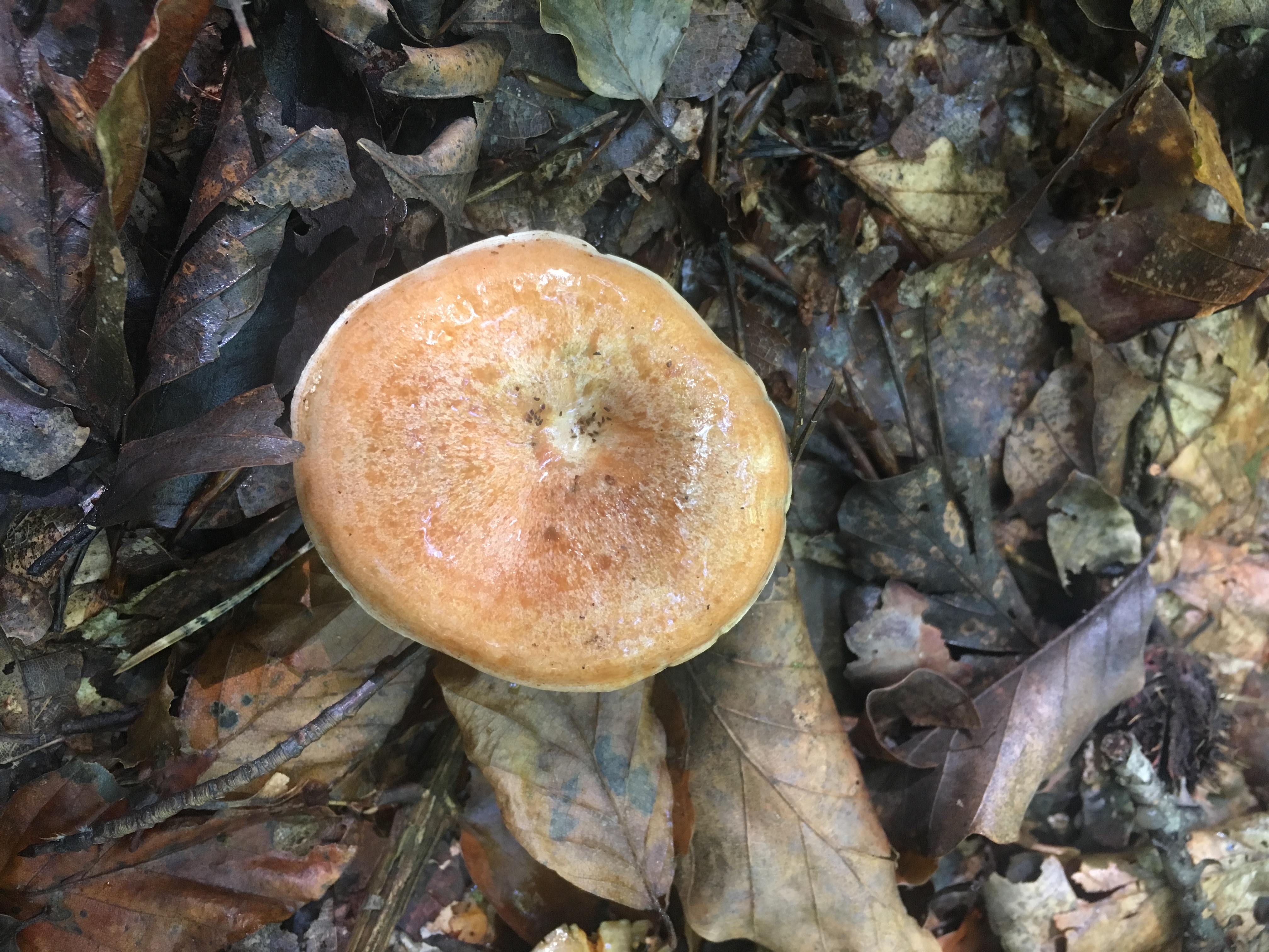 Das ist der Hut des Edelreizkers, einem sehr guten Speisepilz. Ein markantes Erkennungsmerkmal ist die orangefarbene Milch die an Bruchstellen sofort ausläuft.