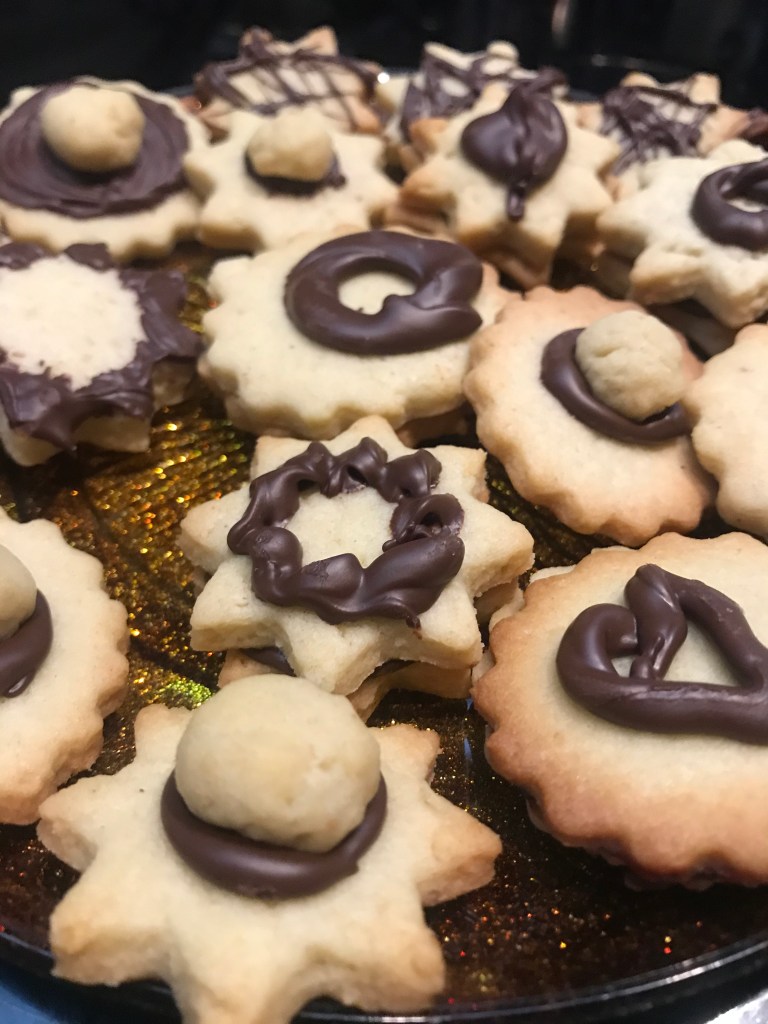 Auch in unserem Haus wird es langsam weihnachtlicher. Es duftet heuer bei mir in der Küche das erste Mal nach Weihnachtskeksen. Denn einerseits wurde ich in den vergangenen Jahren von meiner Mutter immer sehr verwöhnt und mit unheimlich guten Keksen in rauen Mengen beliefert. Aber es ist es höchste Zeit, dass ich auch mal eigene Kekse backe. Andererseits wollte ich dieses Jahr vegane Weihnachtskekse haben und habe daher herum getüftelt um Rezepte zu veganisieren. Gut sind meine Mürbteigkeksi auf jeden Fall geworden, teilweise schauen sie auch gar nicht so schlecht aus, aber da ist sicher noch Spielraum nach oben. Meine Mutter ist eine Meisterin im Keksbacken, hat immer schon Wochen vor Weihnachten bis zu 13 verschiedene Sorten für die ganze Familie gebacken und sich jedes Jahr vom Keksbacken mit den Worten verabschiedet: „Aber nächstes Jahr backe ich keine Kekse mehr!“ Abwarten – wir werden ja sehen wie es im nächsten Jahr ausschaut.
