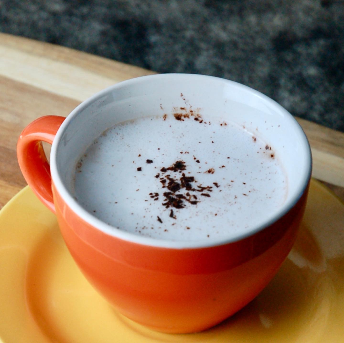 Der heiße Pflanzendrink lässt sich mit dem Hochleistungsmixer fast wie Milchschaum ein bisschen aufschlagen, sozusagen als „Sahnehäubchen“ für deinen Kakao.