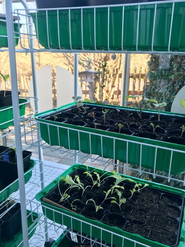 Ich habe mir mit Rollregalen beholfen in denen ich mehre Etagen mit Anzuchttöpfen leicht hin und her bewegen kann. So kann ich die Pflanzen an warmen Tagen ohne großen Aufwand ins Freie stellen und sie langsam abhärten. Über Nacht kommen sie dann wieder ins Warme.