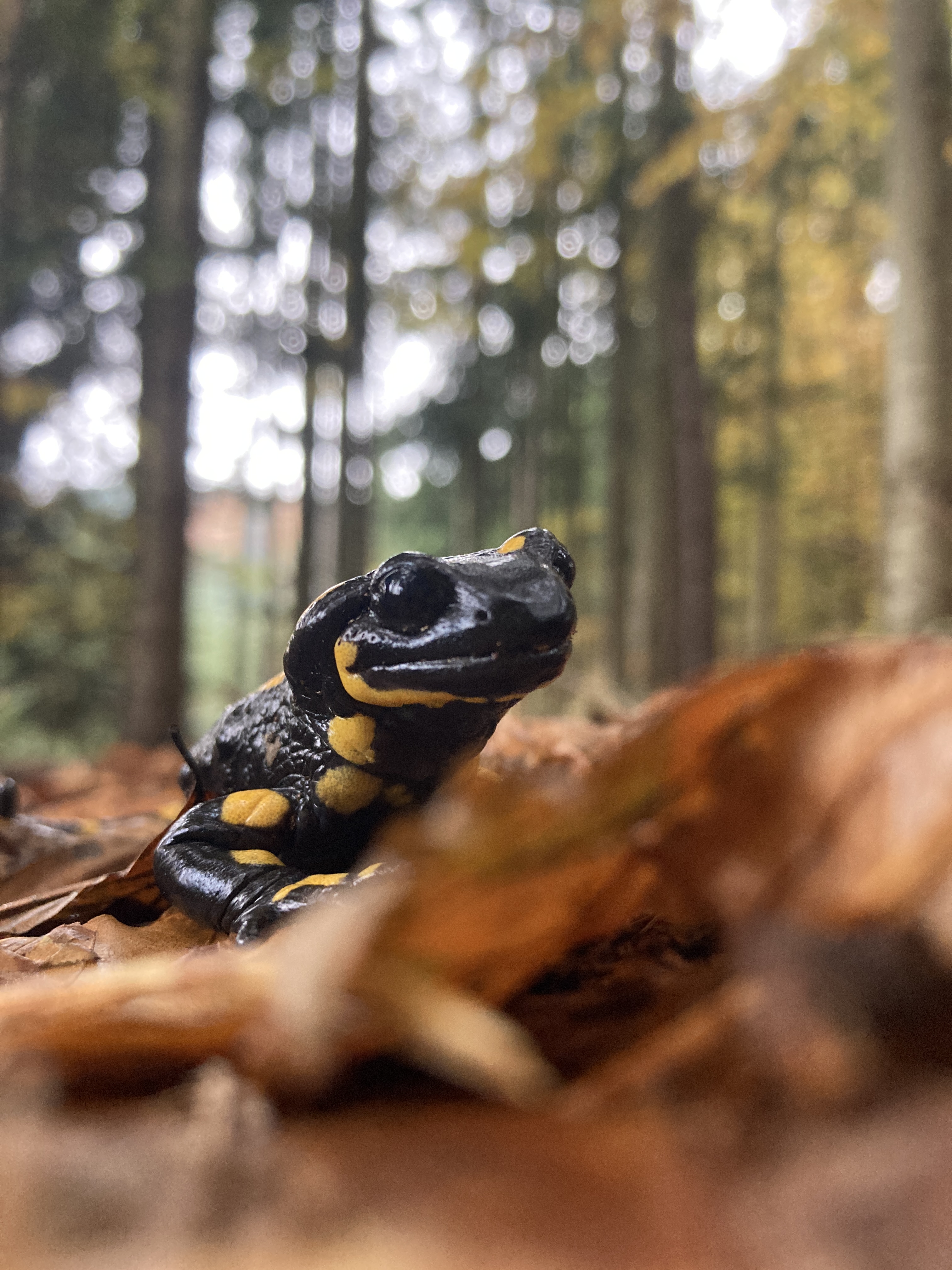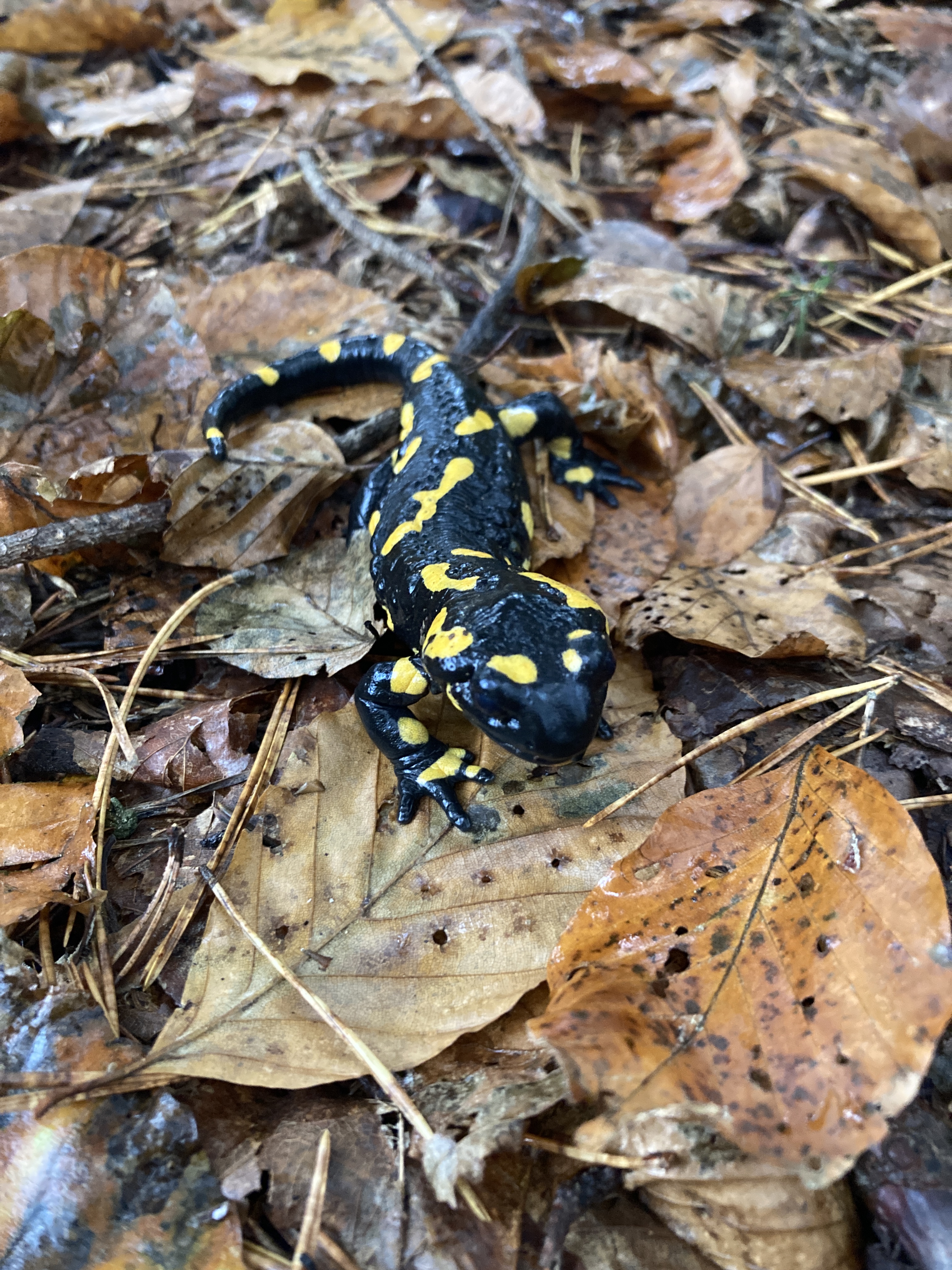 Am nächsten Tag erkundigte ich mich bei www.naturschutzbund.at was am besten zu tun sei. Der Ratschlag war, den kleinen Feuersalamander in Ruhe zu lassen und den recht außergewöhnlichen Fund in der App des Naturschutzbundes zu verzeichnen. Diese App gibt User:innen die Möglichkeit Entdeckungen mit Fundort zu melden, um eine Art Bibliothek von Funden zu schaffen.
