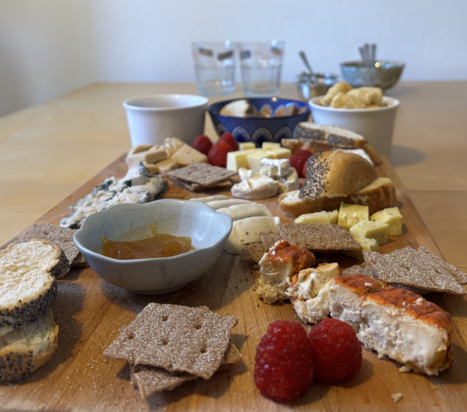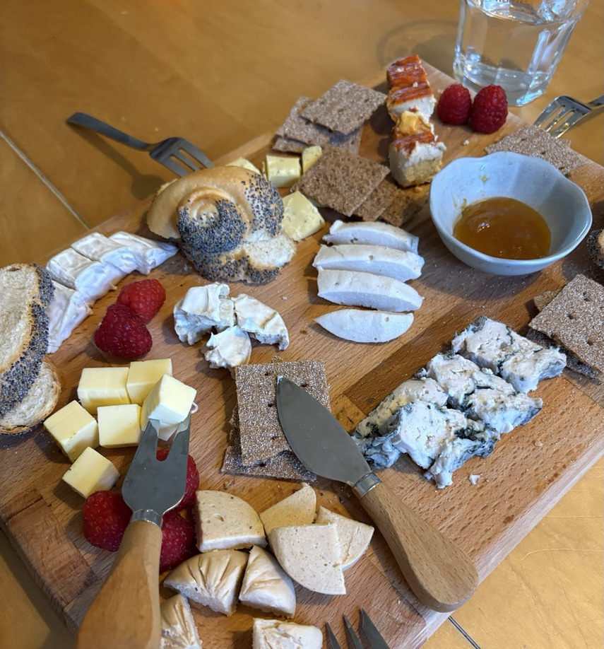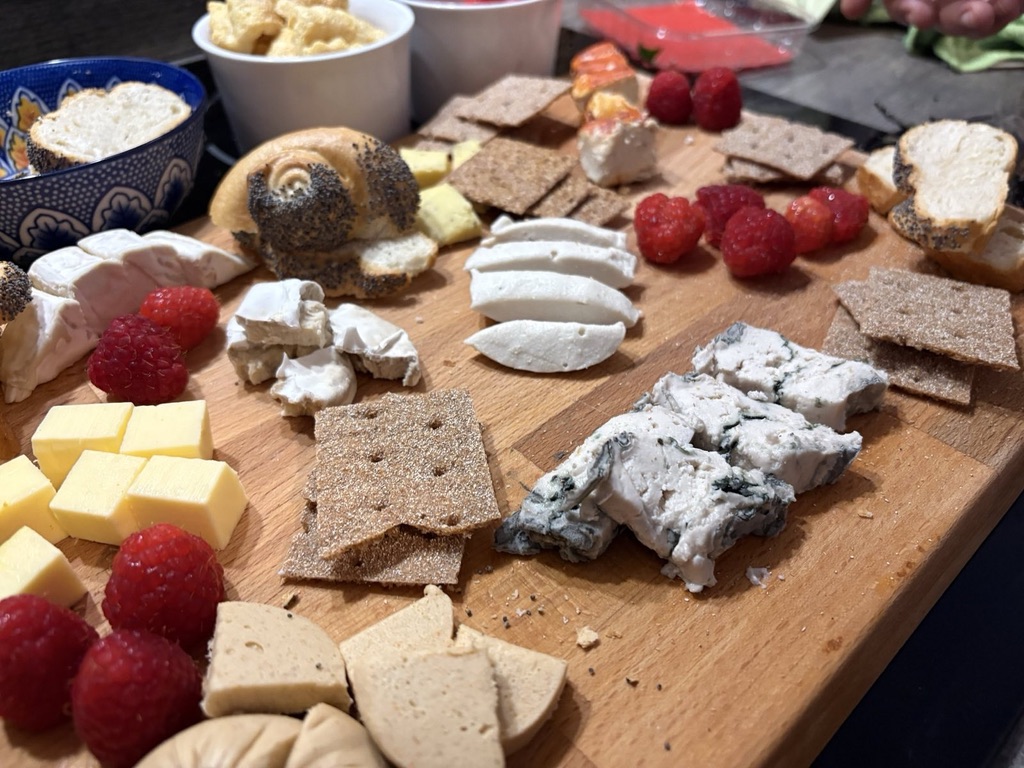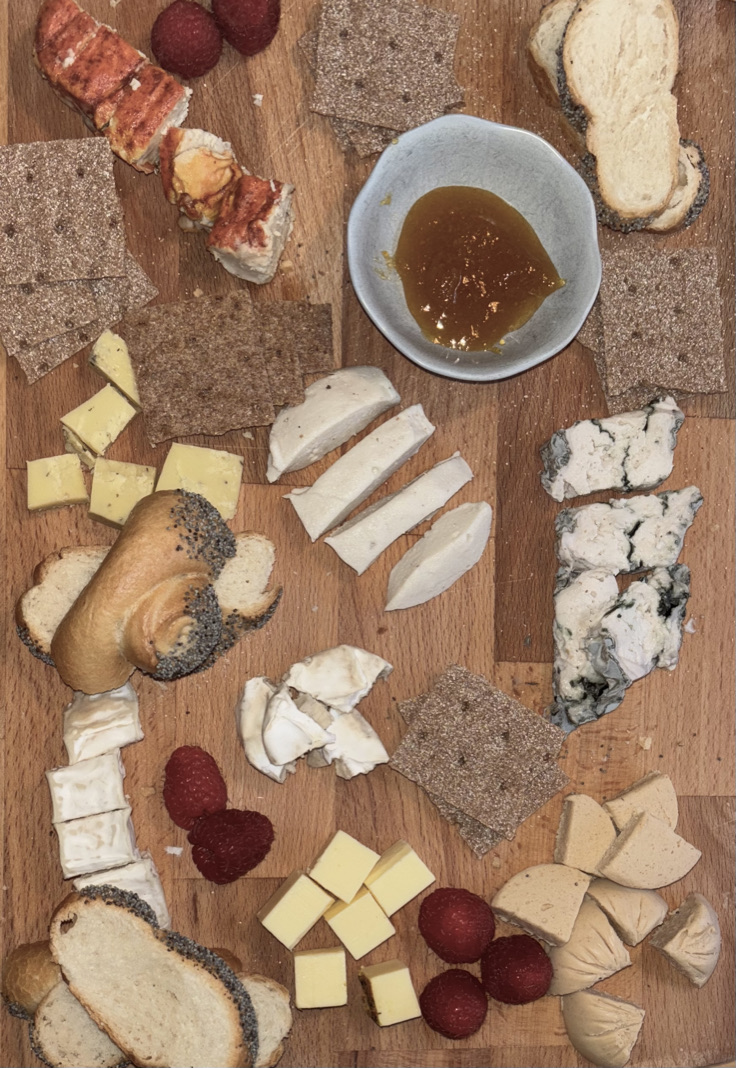Ich habe meine Töchter eingeladen, mit mir eine Verkostung von acht verschiedenen veganen Käsealternativen zu machen. Ziel war es, herauszufinden, welche Variante uns geschmacklich am meisten überzeugt. Um unsere Geschmacksnerven zwischendurch zu neutralisieren, griffen wir zu Weißbrot, Wasser, Himbeeren und Essiggurkerl. Es war ein sehr interessanter Nachmittag, und wir fanden es spannend, die verschiedenen Sorten direkt miteinander zu vergleichen. Einige Käsesorten kamen dem Original verblüffend nahe, während andere mit neuen Aromen überraschten.