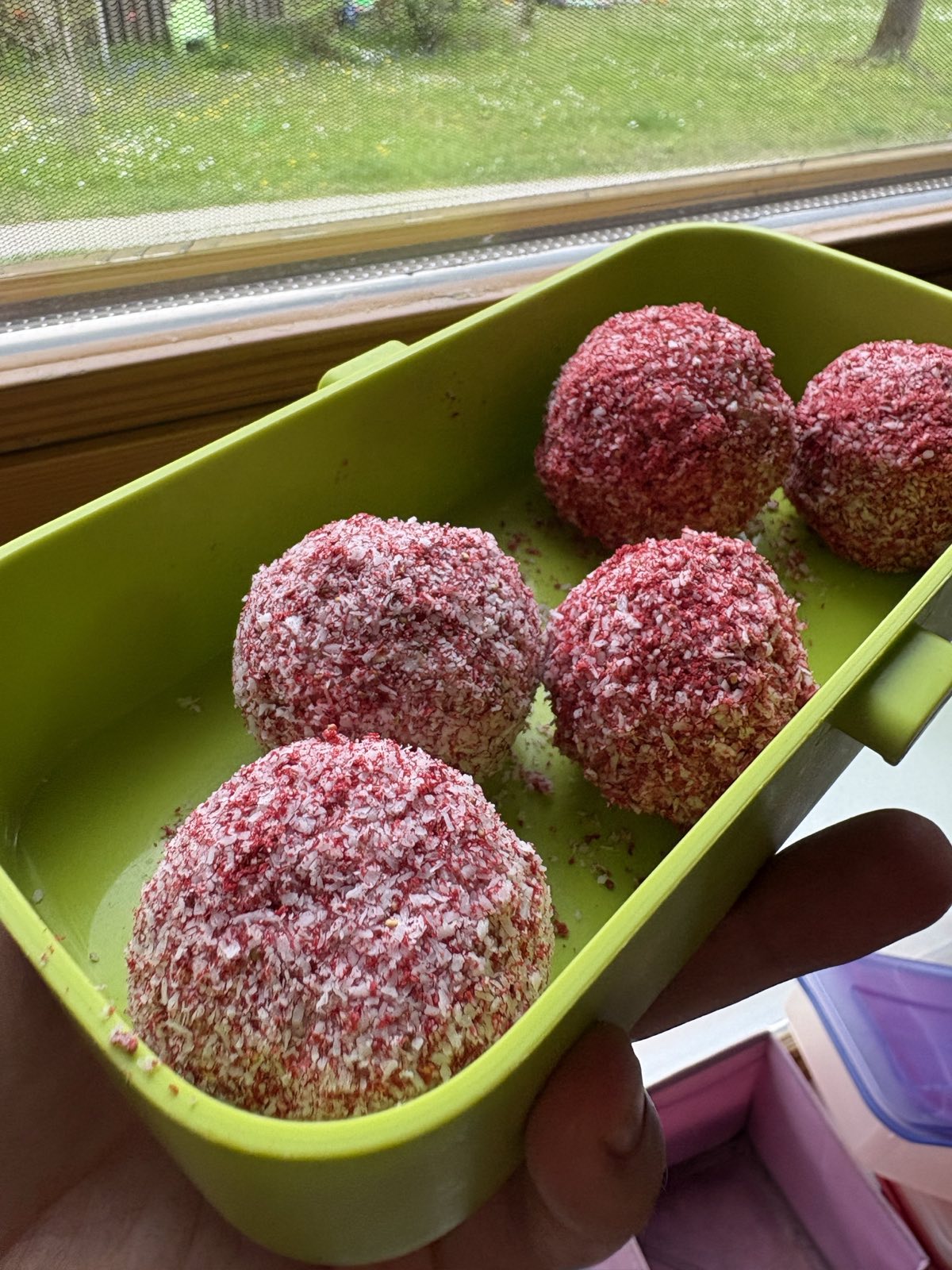 Die Kugeln sind bei meinem Enkel sehr gut angekommen. Sie sind auch ideal zum Mitnehmen auf den Spielplatz. Und – Überraschung – auch wir Erwachsenen fanden sie richtig gut. Eine gesunde Nascherei, die allen schmeckt.