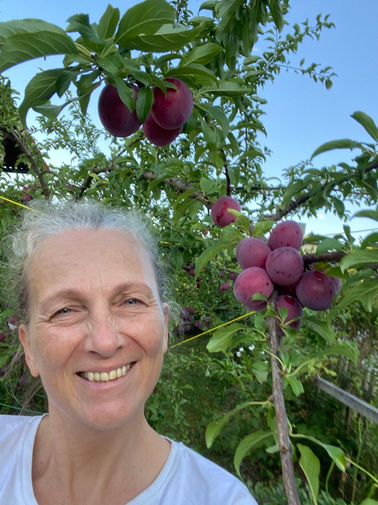 Ein bisschen sah sie bei näherer Betrachtung auch aus wie ein winziges Alien auf Erkundungstour. Mit ihrem ungewöhnlich langen Körper, den Mini-Füßchen und der Fähigkeit sich mit den Füßchen anzuklammern, hatte ich das Gefühl, sie sei gerade frisch aus einem Sci-Fi-Film geplumpst – direkt in meine Pflaumenschüssel. Bisserl gruselig zu Beginn, dann aber doch mehr als faszinierend.