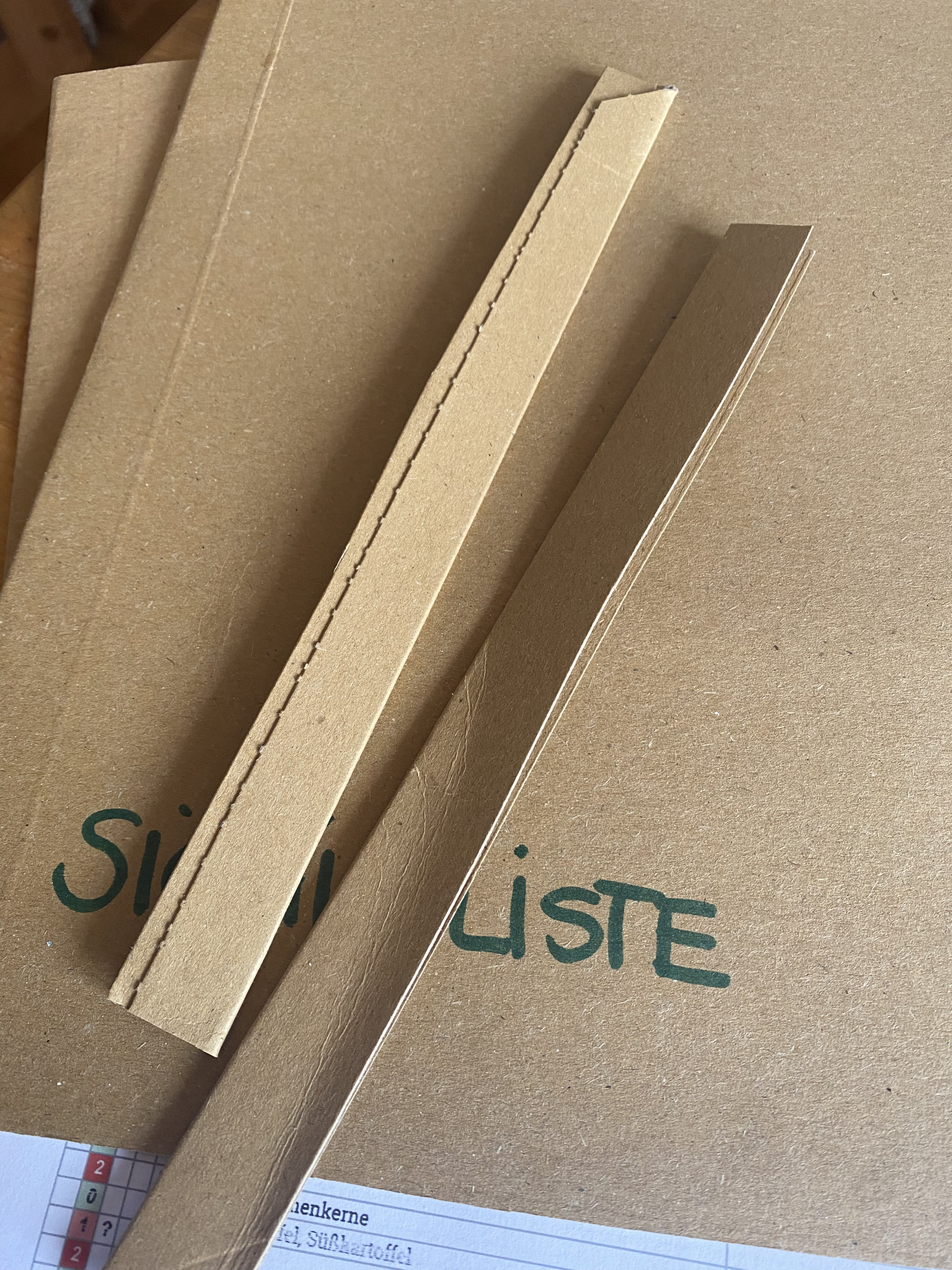 Bevor ein Stück Karton oder dickes Papier endgültig im Müll landet, schneide ich es in kleine Notizzettel – perfekt für Einkaufslisten, schnelle Ideen oder To-Do-Listen.