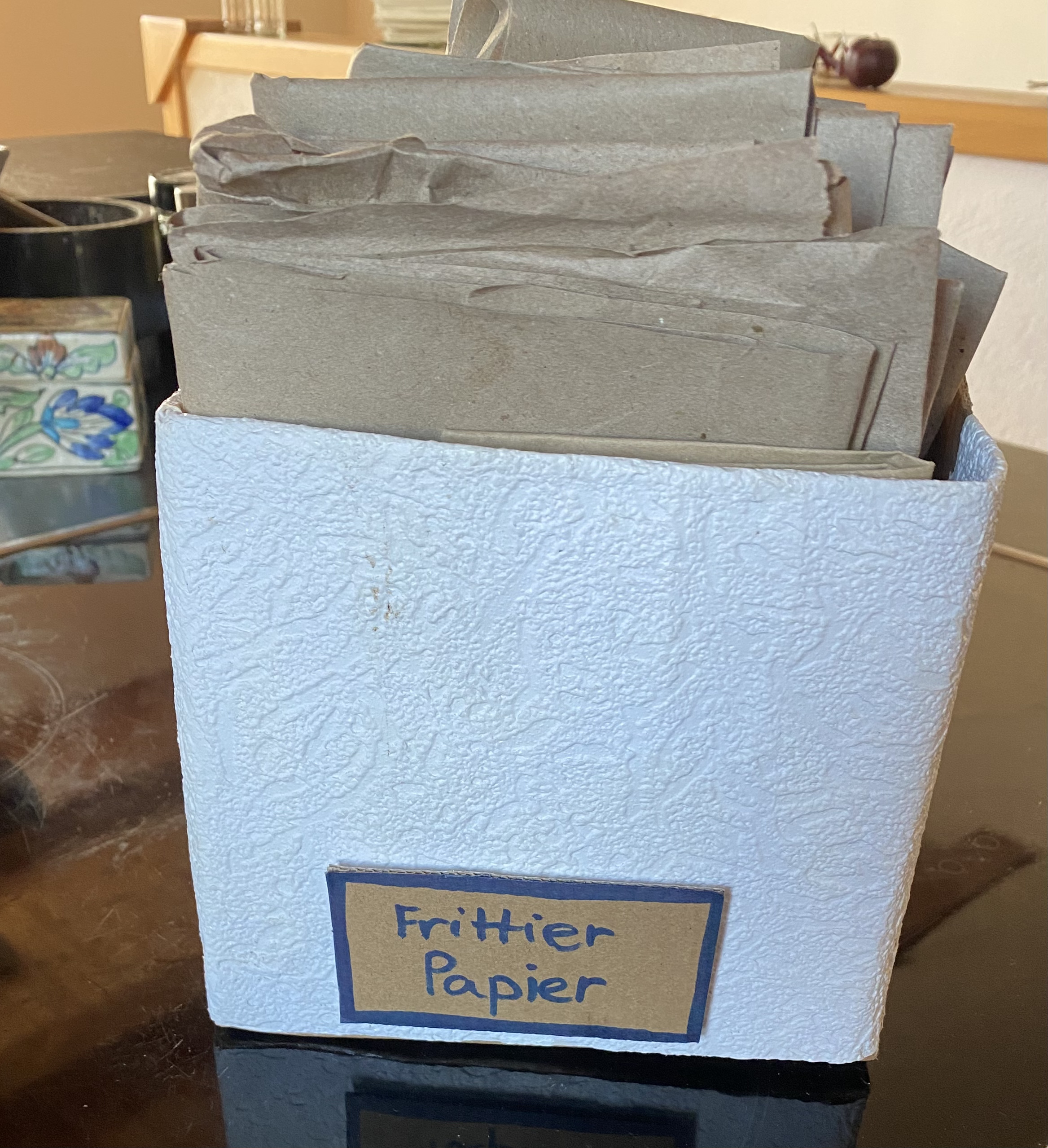 Die Papierstücke aus den Paketen schneide ich gerne in handliche Formate. Perfekt, wenn ich Pilze, Pommes oder kleine Teigtaschen frittiere – das Papier saugt zuverlässig das überschüssige Öl auf.