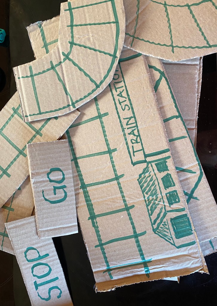 Neulich habe ich aus einem Karton spontan ein kleines Spielzeug für meinen zweijährigen Enkel gebastelt: ein paar Eisenbahnschienen. Nicht perfekt, sicher nicht künstlerisch wertvoll – aber er hatte eine Freude damit. Vielleicht nur einmal, aber das macht gar nichts. Ich habe mich gefreut, dass so ein simples Stück Karton zu einem Mitbringsel werden konnte, das nach dem Spielen einfach wieder recycelt wird.