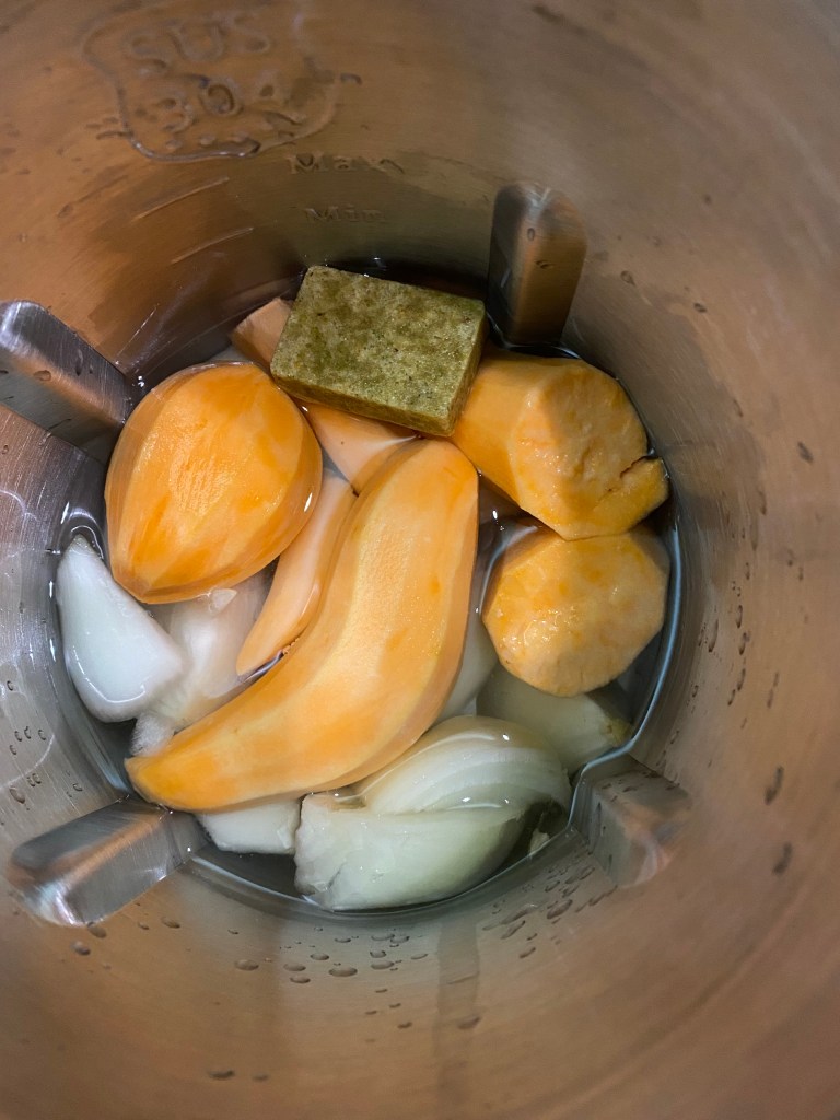 Und dann kam die Zwiebel-Süßkartoffelsuppe. Die war so gut, dass ich jetzt überzeugt war, das Gerät darf bleiben.